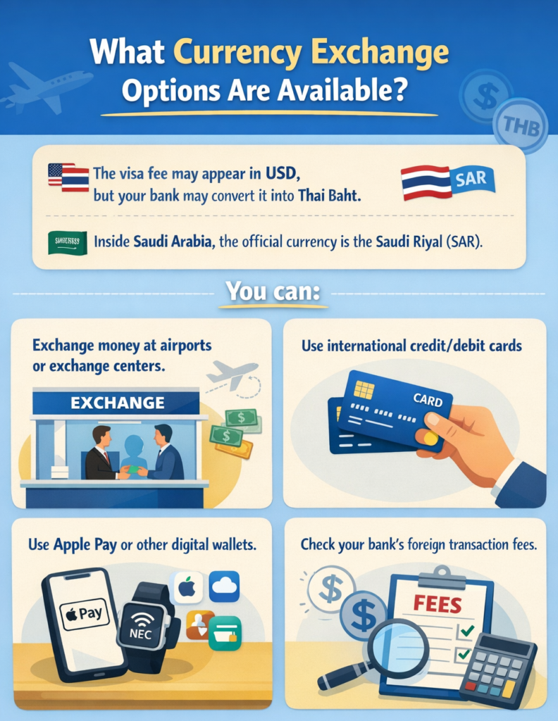 The visa fee may appear in USD, but your bank may convert it into Thai Baht.