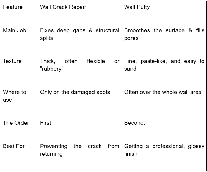 Wall Crack Repair vs. Wall Putty: Which One Should You Use First?